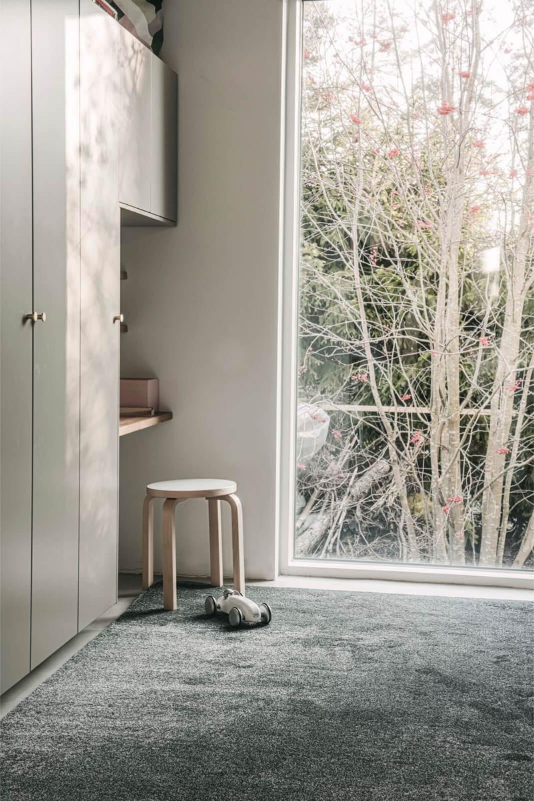 Eläväpintainen Kide nukkamatto luo tyylikkään ja modernin ilmeen tilaan.