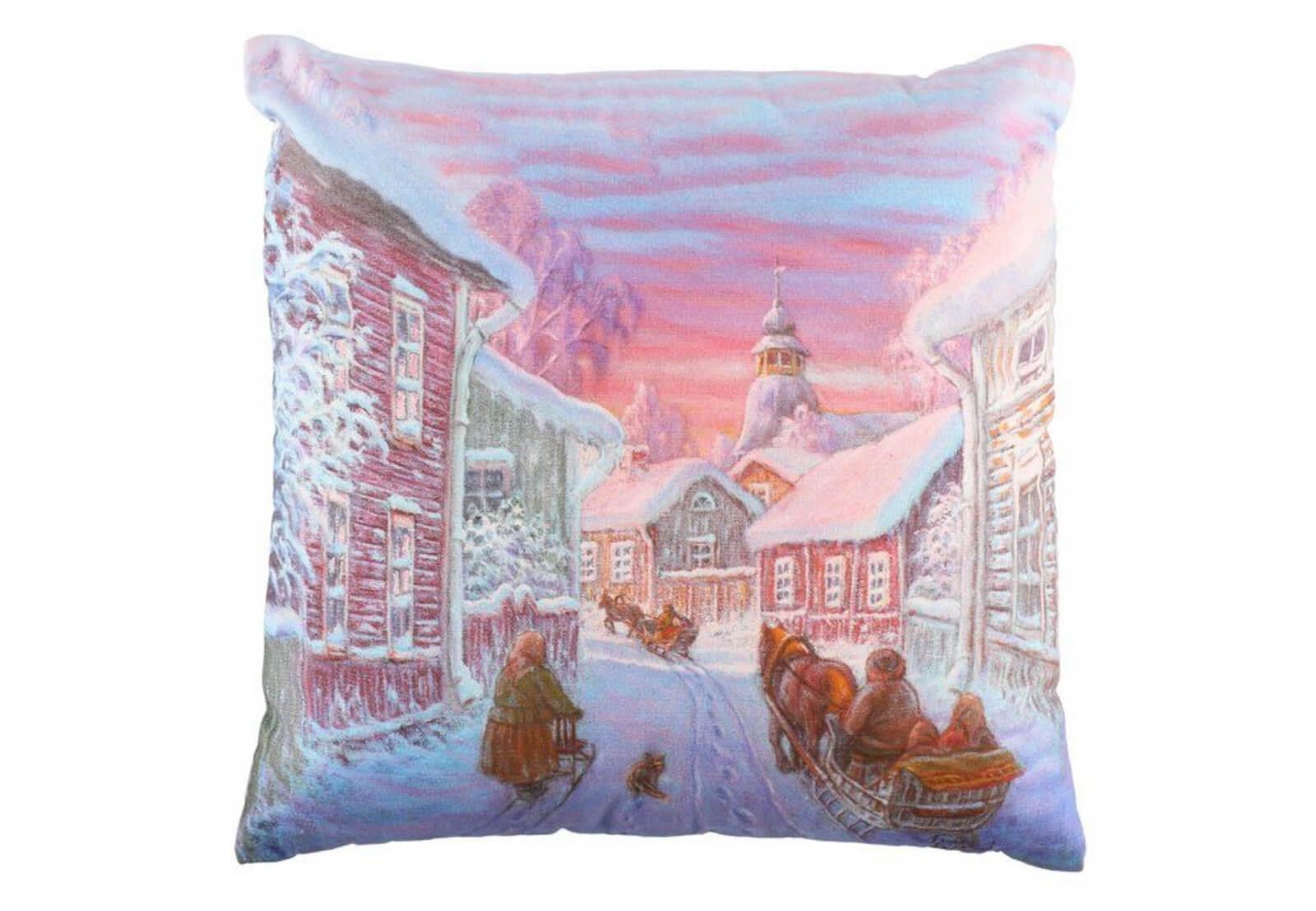 Nostalgia Kirkkomatka koristetyyny on todella kauniisti kuvioitu, sillä tyynyssä perhe on matkalla kirkkoon reellä ja matka kulkee kauniiden puutalojen keskellä. Talvisessa maisemassa taivas on värjäytynyt sinisen ja vaaleanpunaisen sävyiseksi. Värikäs koristetyyny sopii mainiosti täydentämään jouluista tai talviaiheista sisustusta. Koristetyyny on myös erinomainen lahjaidea läheiselle. Tilaa ihastuttava Nostalgia Kirkkomatka koristetyyny edulliseen hintaan ja nopealla toimituksella verkkokaupastamme tai tule ostamaan myymälästämme!